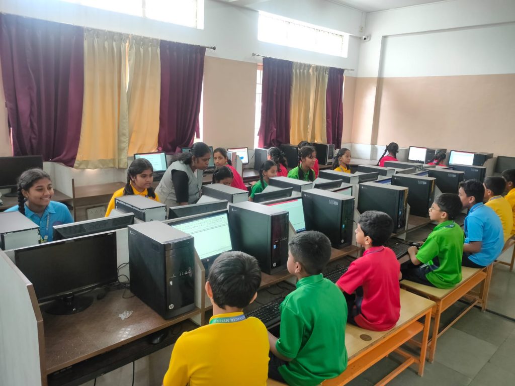 Students have both computer theory & practical classes with the demonstrations in the class room and computer lab respectively.