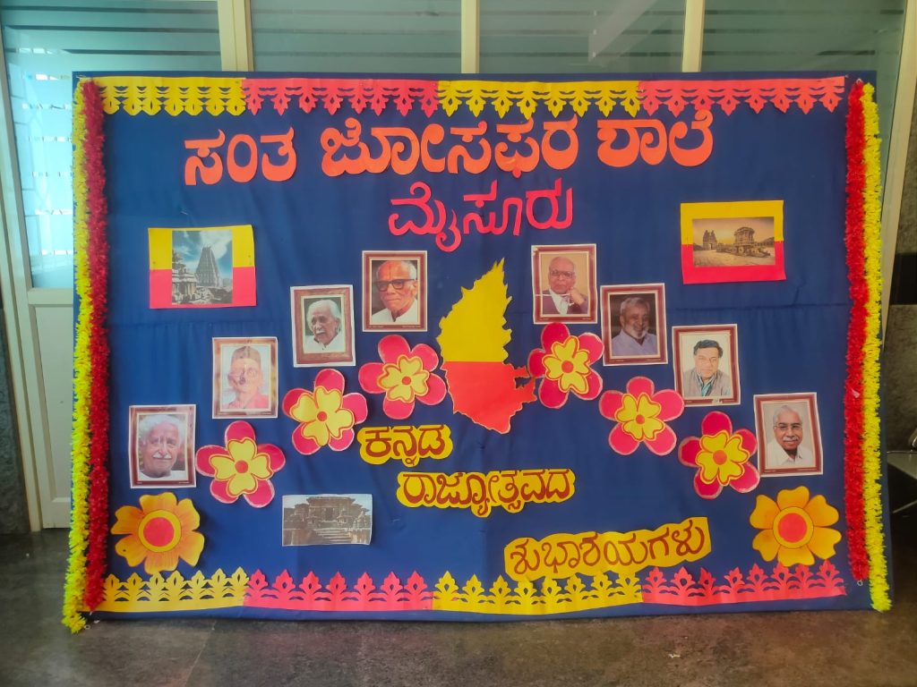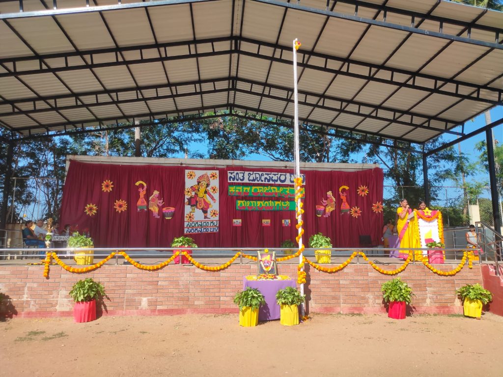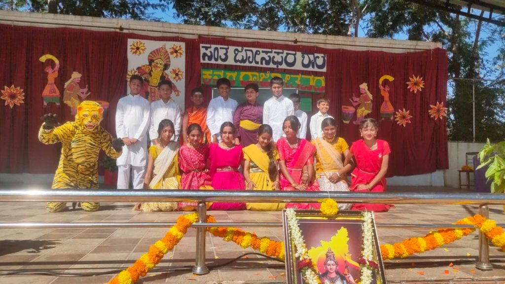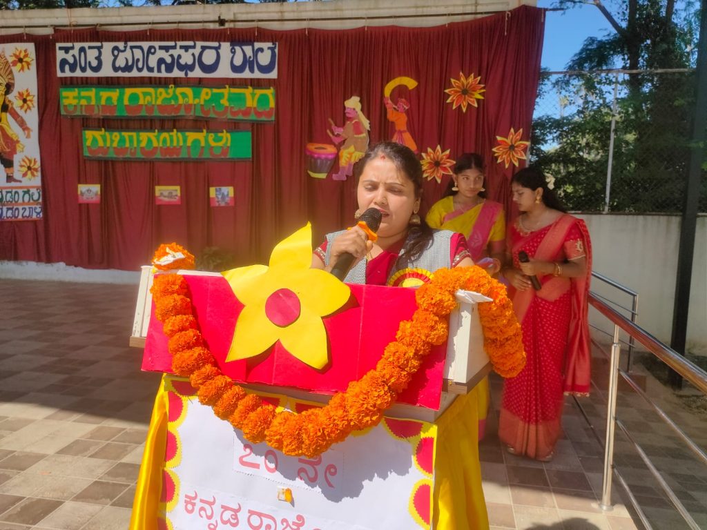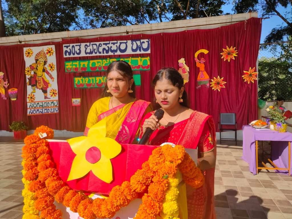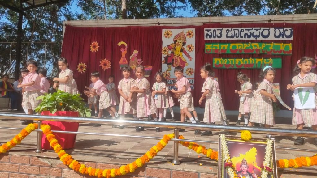 Our school celebrated Kannada Rajyotsava with pride, joy, and cultural enthusiasm. The program began with a soulful prayer song, setting a graceful and respectful tone for the day. Students of different classes came together to showcase Karnataka’s rich heritage through a vibrant skit-cum-dance performance and inspiring character representations of great personalities who contributed to the state and the Kannada language.