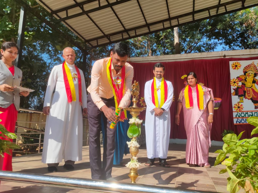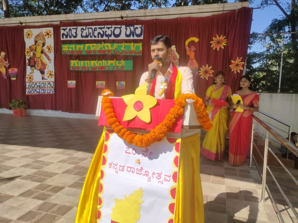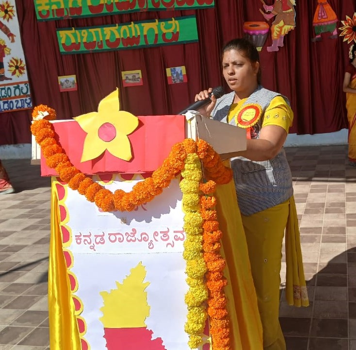 We were honored by the presence of our special guest Mr. Parameshwar G, Kannada Lecturer, Base P.U. College, Mysuru who spoke about the beauty, history, and importance of Kannada. His words encouraged everyone to value and promote our mother tongue with pride and responsibility.